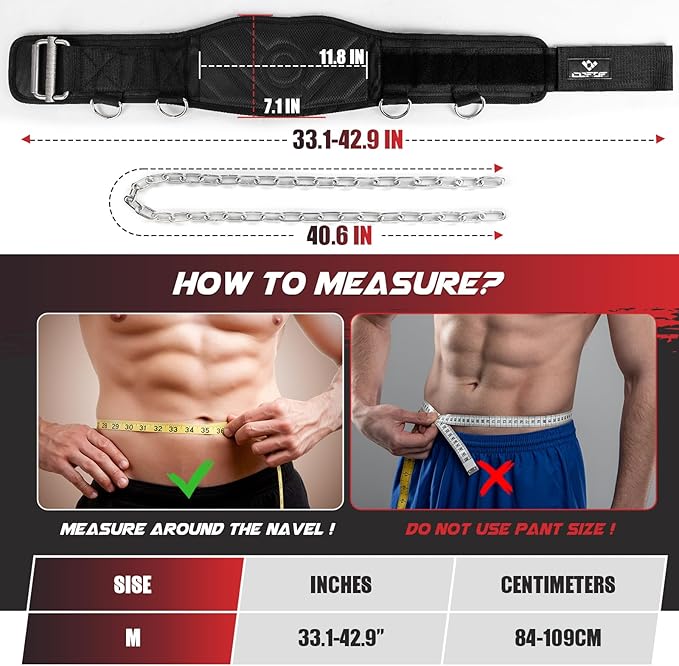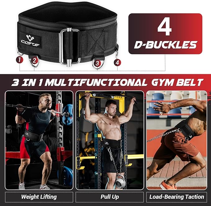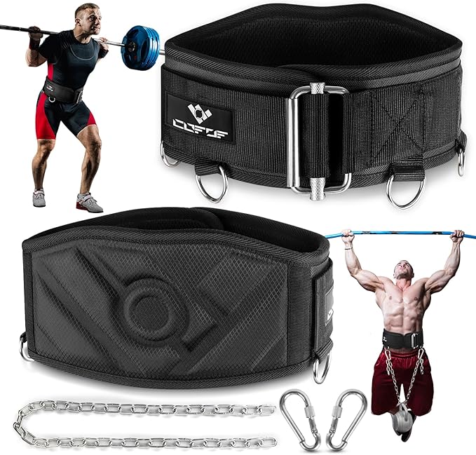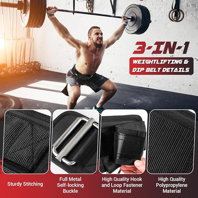 - [3 in 1 Weight Lifting Belt] Our gym belt is a multifunctional belt that can be used as a weightlifting belt or a dip belt. One fitness belt for all your workout needs. This dip belt with chain is suitable for weightlifting, powerlifting, bodybuilding, squatting, deadlifting, squatting, pull-ups, cross-training and many other training methods. It will help you get through your workout more safely and confidently.