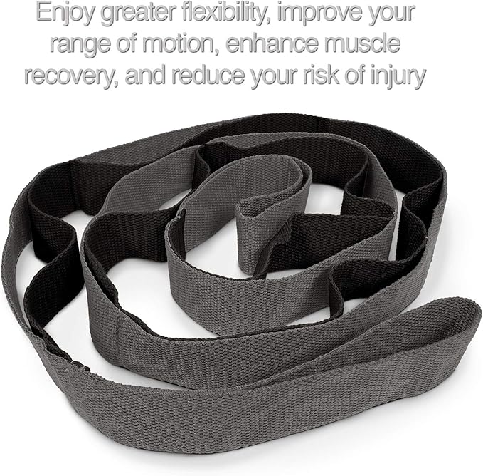 - After the deep tissue massager , the most important thing for your body is stretches . Our stretch strap is amazing for your hamstring and quads . Just wrap one end around your foot , and control the intensity by grabbing different handles .