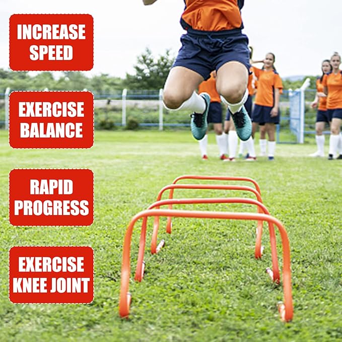 - 【9 inch Agility Training Hurdles】you will get 4pcs speed hurdles for agility training, 9" heights. Perfect equipment set for an enhanced knee lift and quick stepping, improves your speed, balance, and agility. You can take your training to another level with Direct Agility Speed training Hurdles