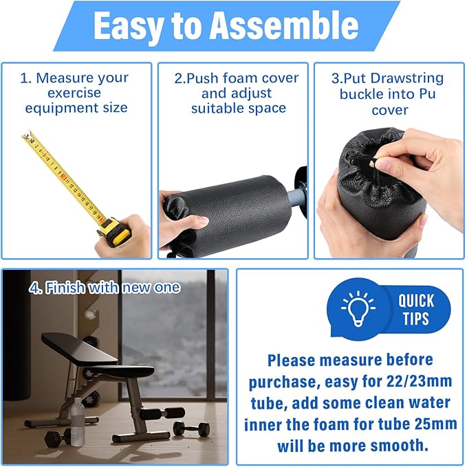 - Warm Tips: you will receive 4 pieces of gym roller foam with leather protective cover, please allow 1-2 mm measurement error, please confirm whether it matches the corresponding sports equipment replacement part before purchasing