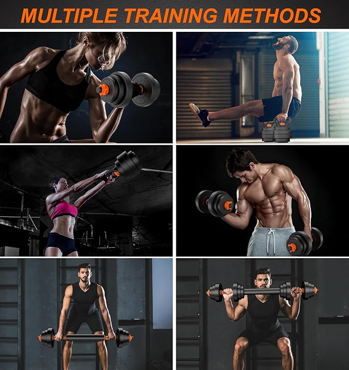 - 【DICAO 4-in-1 Multifunctional Set】: Elevate your home gym experience with our updated 44lbs adjustable dumbbell set. Seamlessly switch between dumbbells, barbells, and push-up stands, offering endless possibilities for sculpting your ideal physique.