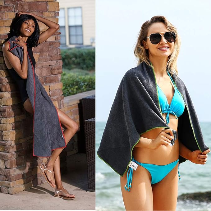 - 【Special Designed Family Pack】Awesome water resistant bag includes 4 towel and 1 extra mesh bag,a perfect choice for a family of four if you want to go camping or the beaches.Each towel has a special color seam that allows family members to track their own towels