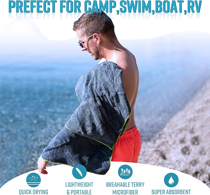 - 【Strong Water Absorption and Quick Drying】This is the most absorbent of all towels and is ideal for swimming, sailing, beach and other water sports,and can be air dried and reused in a short time.Of course, this is also a very perfect household towel, which is similar to a cotton towel but more functional.