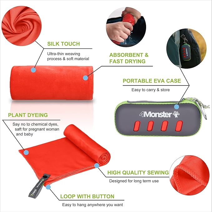 4Monster Camping Towel Super Absorbent-Quick Dry Microfiber Towel