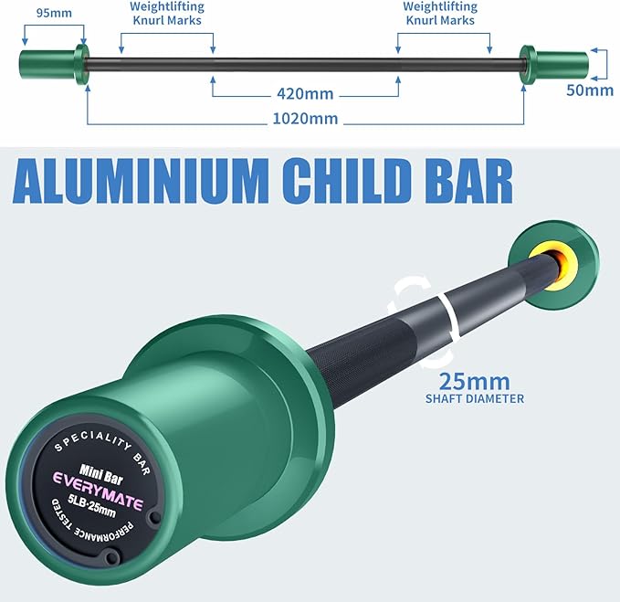 • Ergonomic Design: Don't be fooled by its size! Everymate mini barbell bar is designed to deliver significant effects. Its ergonomic design ensures a comfortable grip and impeccable balance for every lift. Weight distribution along the mini bar ensures stability and control during lifts, allowing women, children and beginners to focus on correct form and technique for a variety of training activities