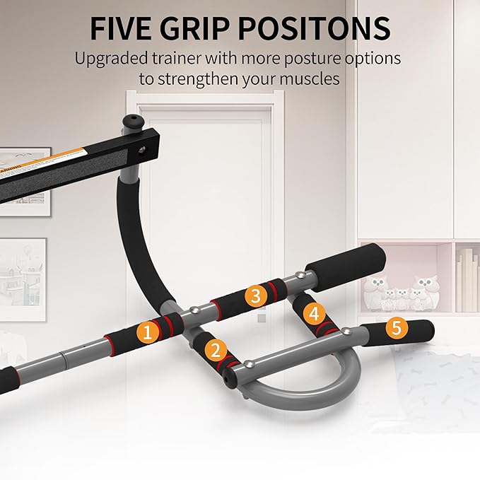 - 💪 EASY TO INSTALL & PORTABLE DESIGN: The adjustable, portable design of this pull-up bar makes it easy to install and assemble on any standard 30" to 32" doorway. And, it can be easily stored when not in use, making it perfect for home or office use.
