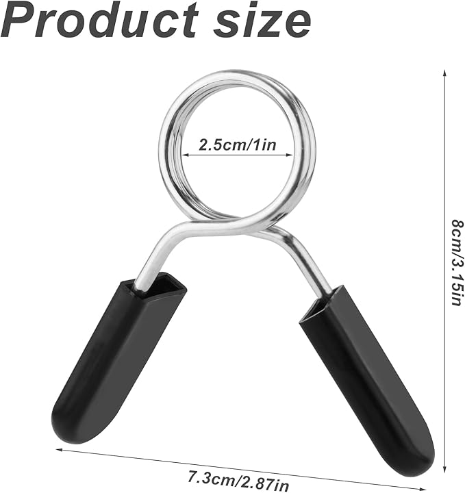 • Size Information: The size barbell clip is about 8x7.3x1.8cm/3.15x2.87x0.71 inch. Its inner diameter is 2.47cm/0.97in and fits 1-inch/2.54cm poles.