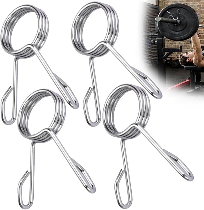 - Heavy Duty: Made of chrome-plated steel designed with 3 circle springs, the weight clips can hold weight plates in place to prevent sliding off or moving around from the barbell.