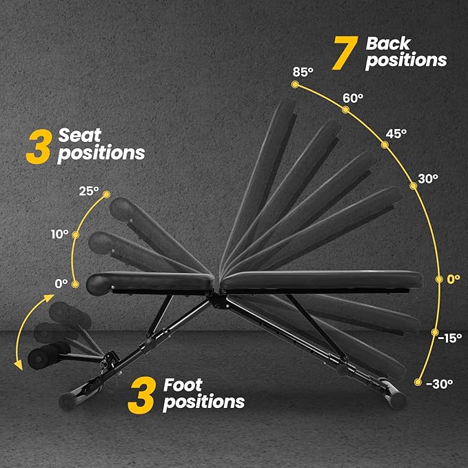 • 【8 LEVEL BACKREST ADJUSTABLE】:The adjustable weight bench has 8 adjustable backrest positions so you can perform a number of upper and lower body exercises while using it in conjunction with dumbbells to hit targets and build/maintain muscle.