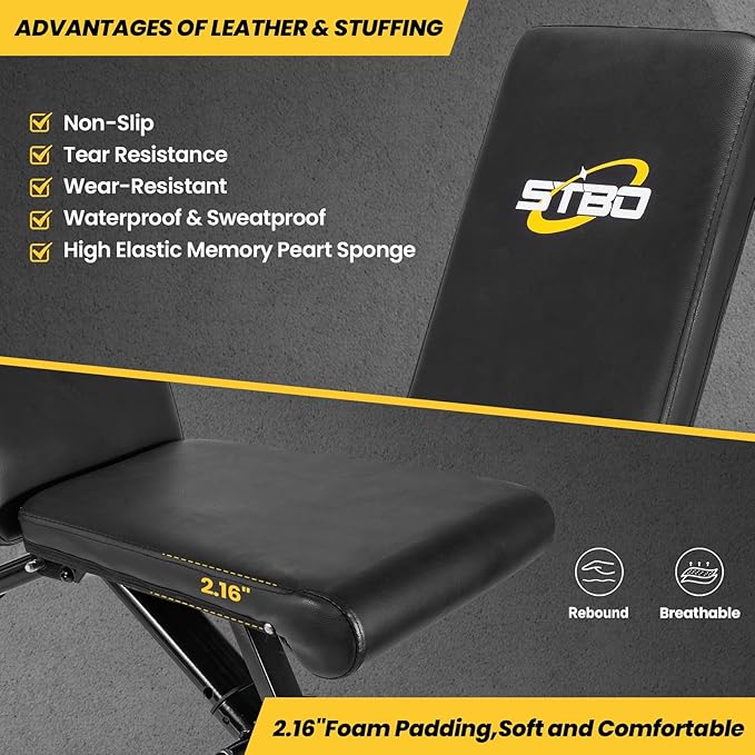 • 【HEAVY DUTY STRUCTURE & STURDY】: This adjustable weight bench only weighs 28LBS but can withstand 600 LBS capacity,thickened 2 inches steel pipe,heavy duty steel frame, height adjustable non-slip foot cover,these can ensure the adjustable weight bench stable.