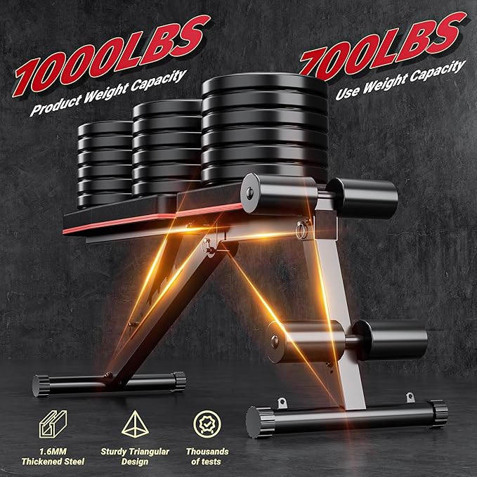 • 【STURDY FRAME】The frame of the dumbbell bench is made of 1.6MM heavy-duty steel, which provides stability and durability during workouts. The bench can support a significant amount of weight 700LBS, making it suitable for both beginners and experienced lifters.