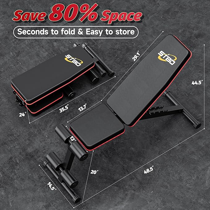 • 【COMPACT SIZE】The STBO foldable bench is relatively compact compared to other fitness equipment, making it ideal for home gyms or small workout spaces. It can be easily stored when not in use.