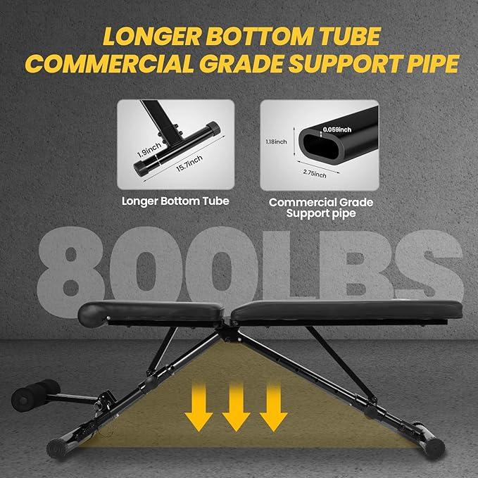- 【HEAVY DUTY STRUCTURE & STURDY】: This adjustable weight bench only weighs 28LBS but can withstand 600 LBS capacity,thickened 2 inches steel pipe,heavy duty steel frame, height adjustable non-slip foot cover,these can ensure the adjustable weight bench stable.