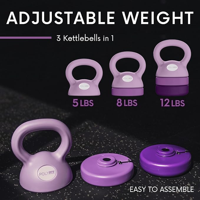 - GOOD FOR BEGINNERS TO PROS | 3 KETTLEBELLS IN 1. No need to purchase several kettlebells everytime you change your exercise routine! Polyfit's Adjustable Kettlebell is easy to adjust, perfect for any fitness newbie or for the enthusiast looking to challenge themselves a little more. With weights that you can easily add or remove, you can choose from 5 lbs, 8 lbs, or 12 lbs.