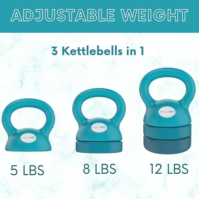 - GOOD FOR BEGINNERS TO PROS | 3 KETTLEBELLS IN 1. No need to purchase several kettlebells everytime you change your exercise routine! Polyfit's Adjustable Kettlebell is easy to adjust, perfect for any fitness newbie or for the enthusiast looking to challenge themselves a little more. With weights that you can easily add or remove, you can choose from 5 lbs, 8 lbs, or 12 lbs.