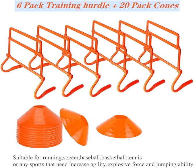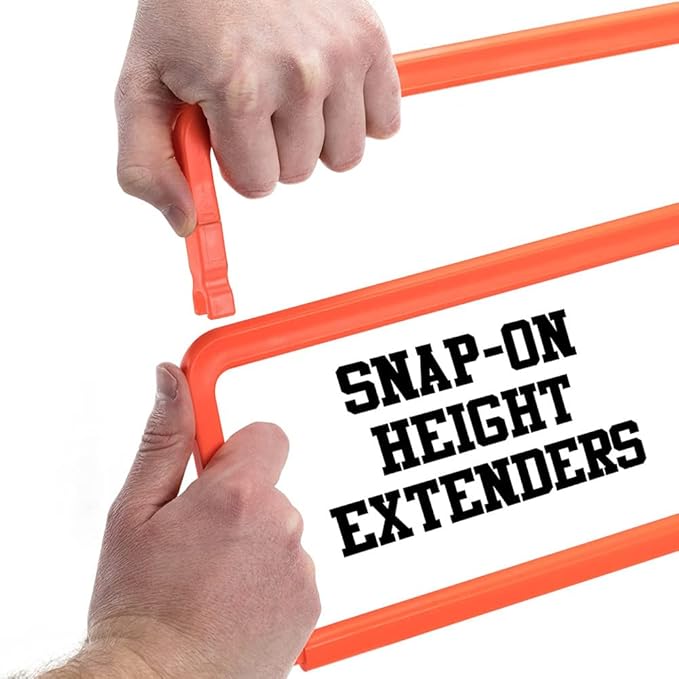 - IMPROVE FOOTWORK, SPEED & AGILITY - Set of 6 premium high speed agility hurdles are perfect to devise challenging practice drills (6in, 9in, 12in & 15in high hurdles available). The bright orange color makes them extremely easy to see, even during night practice sessions.