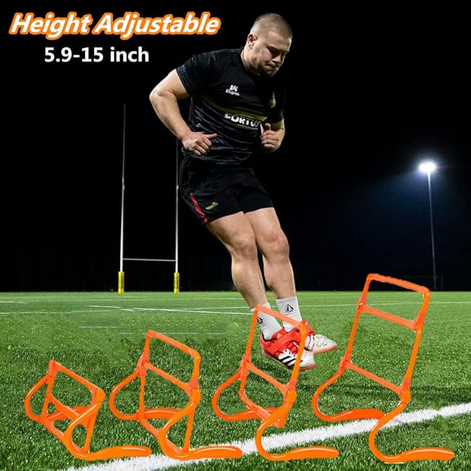 - FOUR HEIGHTS AVAILABE - The speed training equipment is for sports stars of all ages, and these top of the range speed training hurdles come in 4 heights. Choose between 6in, 9in, 121in, 15in workout hurdles to suit your requirements.