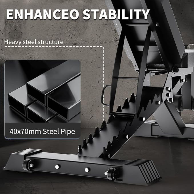 - ✅【UPGRADED MATERIALS】 Upgraded quality with 1.2 mm thickened steel tubing, and enhanced triangle structure to deliver the exceptional workout experience you deserve. Very suitable for use with dumbbells, smith machines, cages, or power racks.