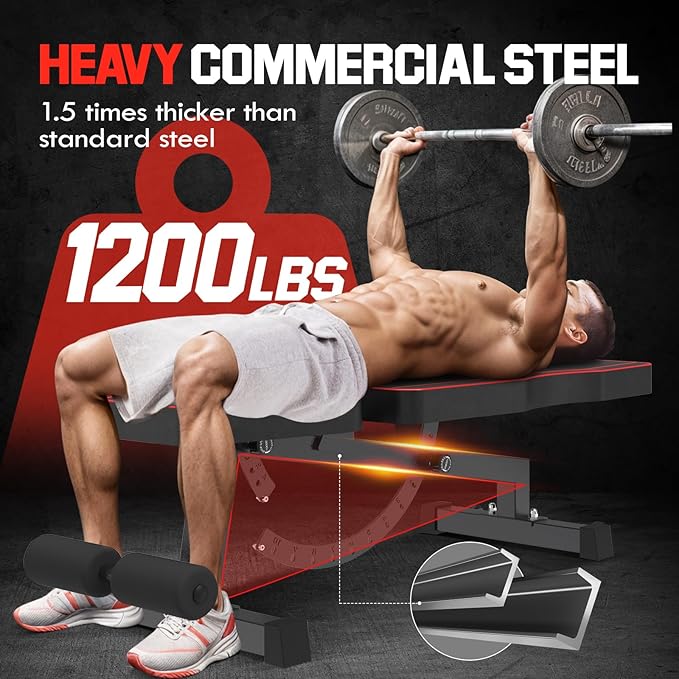 - 【Stable Structure】The Ajmori adjustable weight bench is 1.5 times the thickness of standard steel pipe and is made of high-quality 75*75*3mm commercial square steel. The unique triangular structure of the Ajmori weight bench ensures the safety of each workout, and the weight bench can withstand more than 1200 pounds, providing excellent stability and durability for strength training in the home gym.
