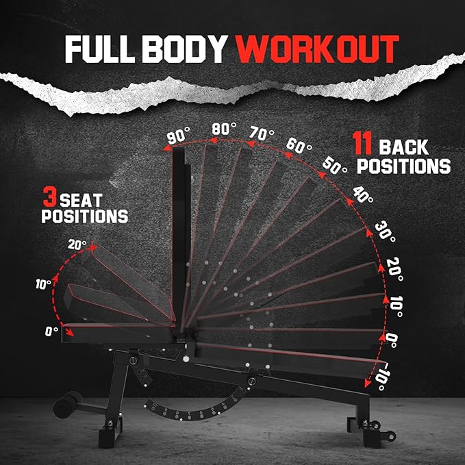 - 【Adjustable Weight Bench】The Ajmori workout bench is designed with 11 backrest positions and 3 cushion positions, you just need to pull the quick bolt, adjust the position to suit yourself and automatically lock,Ajmori workout bench is suitable for multi-functional home fitness, can effectively train the chest, shoulders, back, abs and so on.