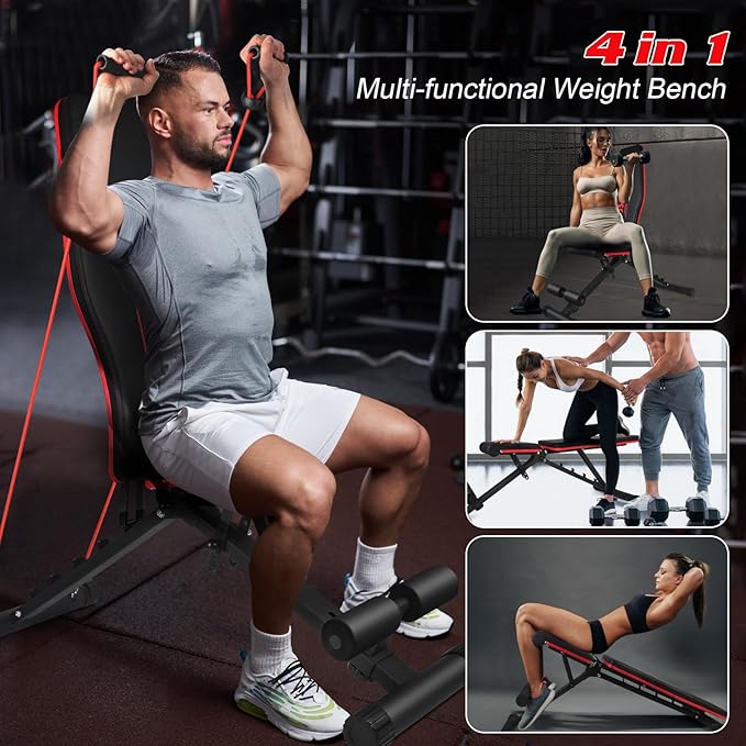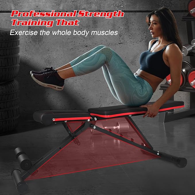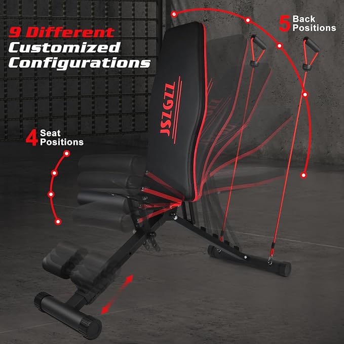 - 【Multi-Joint and Adjustable Design】With 5-position backrest adjustments, 4-position seat adjustments, removable elastic straps and fixed foot rests, our adjustable weight bench foldable are able to meet a wide range of fitness needs, allowing you to work out your entire body more effectively for a full range of self-weighted or weighted workouts.