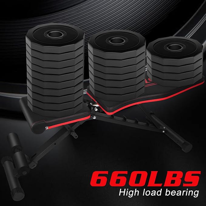 - 【Durability and Ruggedness in One:】The adjustable bench for weight lifting is designed with extended rear support legs to ensure the stability of the chair, and the steel tube is cast with newly upgraded high quality thickened steel, with a load capacity of up to 660 lbs, for your safety.