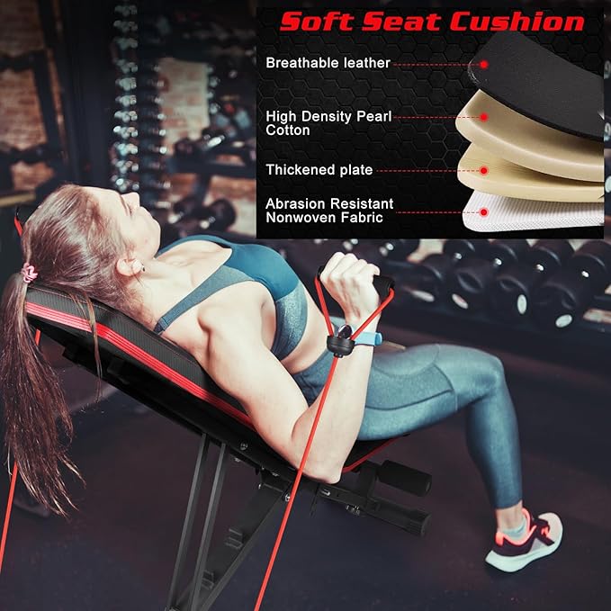• 【Multi-Joint and Adjustable Design】With 5-position backrest adjustments, 4-position seat adjustments, removable elastic straps and fixed foot rests, our adjustable weight bench foldable are able to meet a wide range of fitness needs, allowing you to work out your entire body more effectively for a full range of self-weighted or weighted workouts.