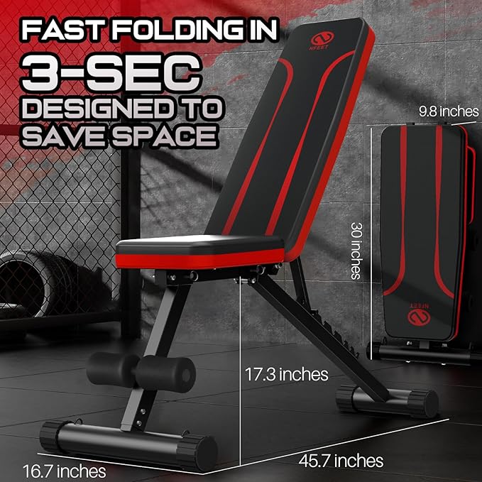 • Break Limits, Train Anywhere: Weight Bench Unleash full-body workouts anytime, anywhere. Quick 3-sec fold & store. Fits in cabinets, sofas, beds. Keep fit at home, office, or outdoors with NFEET portable bench. Healthy living, anytime