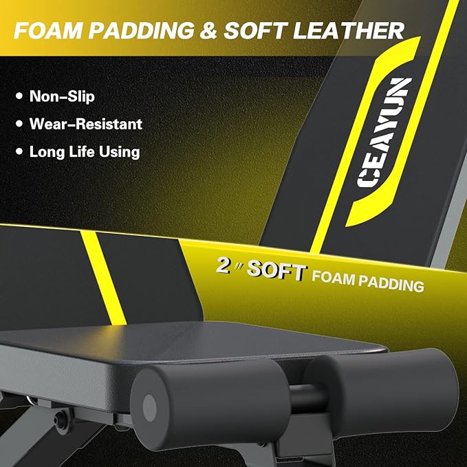 - FOLDABLE & EASY ASSEMBLE - CEAYUN Weight Bench is almost full assembled, you only need take 2 minutes to assemble the front and back support tube and the foam rollers. It is Easy folding and you can store quickly under beds or in closets for ultimate convenience