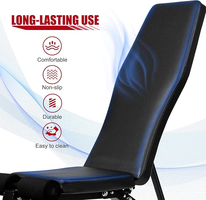 - 700 lbs Weight Capacity: Built with a sturdy and robust frame, this adjustbale weight bench can support up to 700 lbs. The high-quality materials and stable structure provide the necessary safety and support for all your workouts.