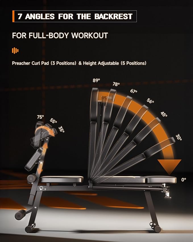 - 【Full-Body Strength Workout】 In addition to the preacher bench and roman bench that enhance hand, waist, and back muscle training, the weightlifting bench adopts a 1.5mm thick main frame structure with 7 adjustable positions.