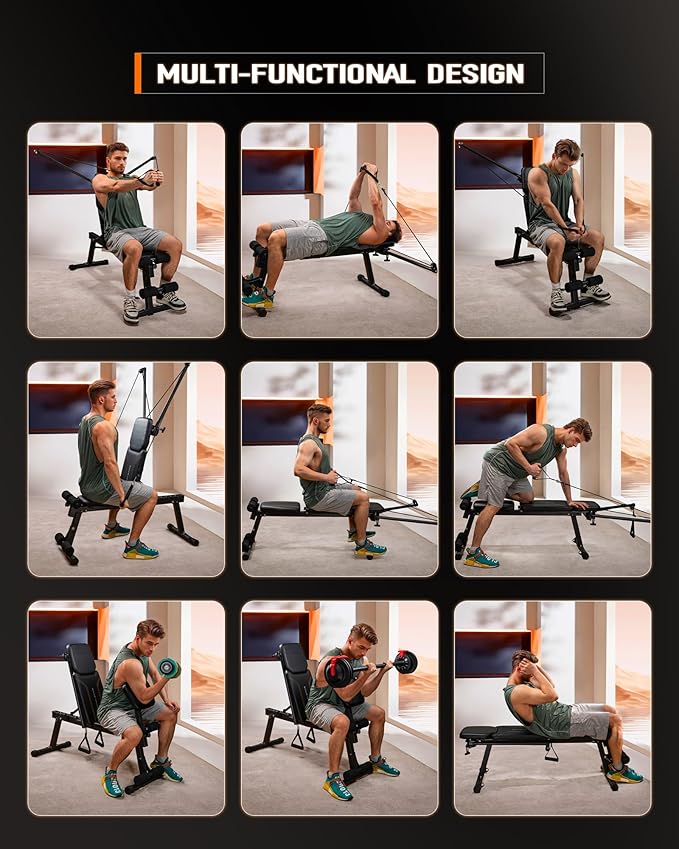 - 【Foldable and Compact】The Motion Space Multifunctional Fitness Bench can be easily folded, occupying minimal space and facilitating mobility and storage, allowing you to set up a home gym anytime, anywhere.