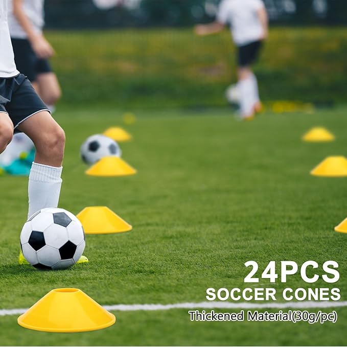 - Durability Guaranteed: Constructed with durable nylon and sturdy plastic steps, our soccer practice equipment is built to withstand long-term use. The thickened design of the soccer cones adds weight, effectively preventing them from being blown away by the wind. Additionally, a built-in manual provides clear instructions for each accessory, ensuring they remain in top condition for extended use