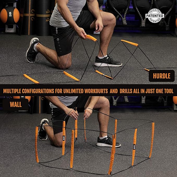 - ✔MULTIFUNCTIONAL TRAINING EQUIPMENT: Our patented design features three products in one: Agility Ladder, Hurdle, and Wall. With slidable rungs and extendable hook and loop design, you can quickly adjust the workout ladder, even on the fly, to various configurations , while reducing the amount of equipment to be hauled to each training venue. Now you can give your team drills a whole new dimension, and more exciting ways of developing speed, agility, and coordination.