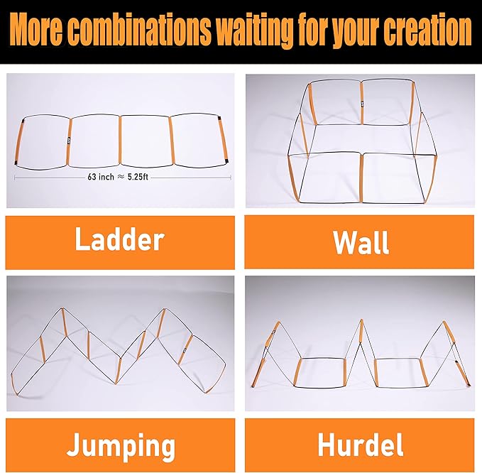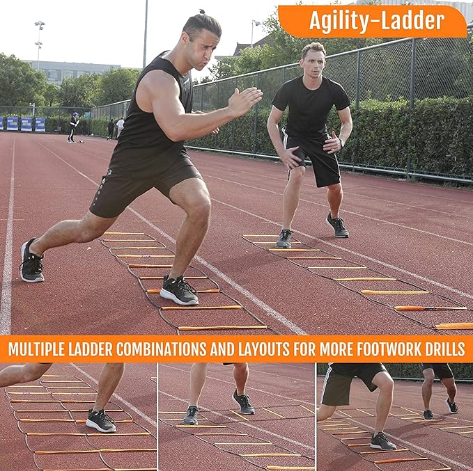 - ✔MULTIFUNCTIONAL TRAINING EQUIPMENT: Our patented design features three products in one: Agility Ladder, Hurdle, and Wall. With slidable rungs and extendable hook and loop design, you can quickly adjust the workout ladder, even on the fly, to various configurations , while reducing the amount of equipment to be hauled to each training venue. Now you can give your team drills a whole new dimension, and more exciting ways of developing speed, agility, and coordination.