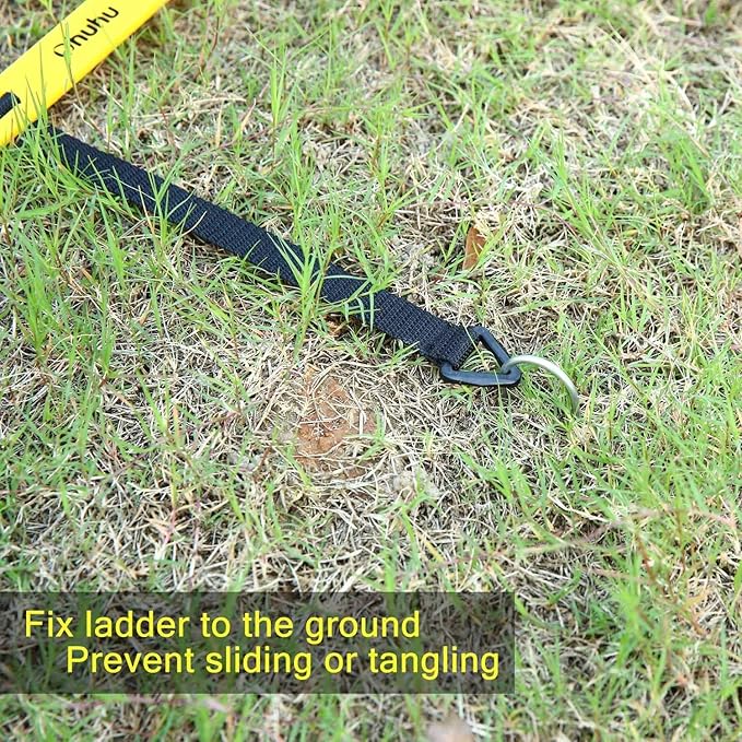 - ADJUSTABLE RUNG DESIGN: Each rung is 17" long, and the adjustable distance of each step is 17" on the 12 rung training ladder set, so you can adjust it the way you want.