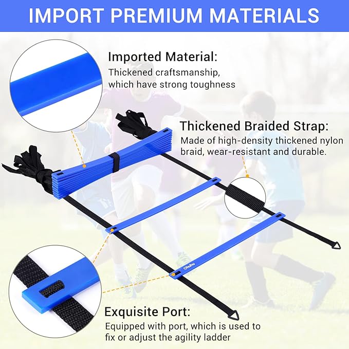- WIDE RANGE OF APPLICATION: If you are an athlete looking to get more nimble, then the Ohuhu agility ladder speed training equipment is for you! Improves your foot speed, lateral speed, agility, coordination and overall balance.