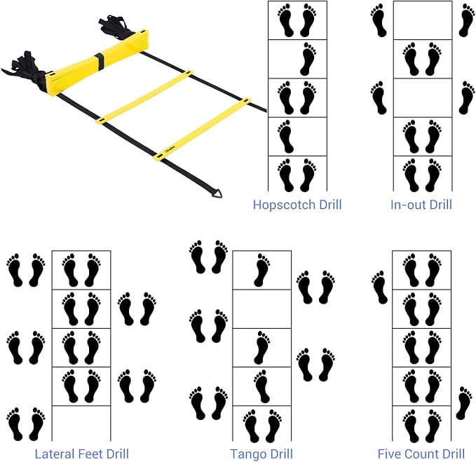 Agility Ladder Speed Training Set: Ohuhu 12 Rung 20ft Soccer 12 Cones, 4 Steel