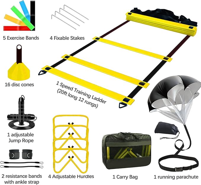 Agility Training Equipment 20FT Agility Ladder,4 Adjustable 16 Football
