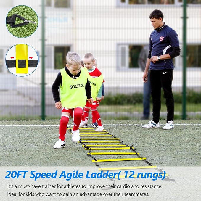 Agility Training Equipment 20FT Agility Ladder,4 Adjustable 16 Football