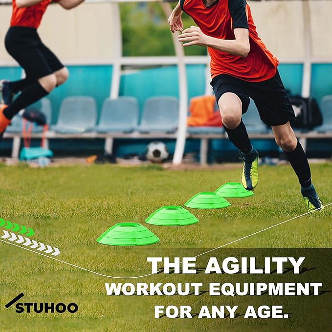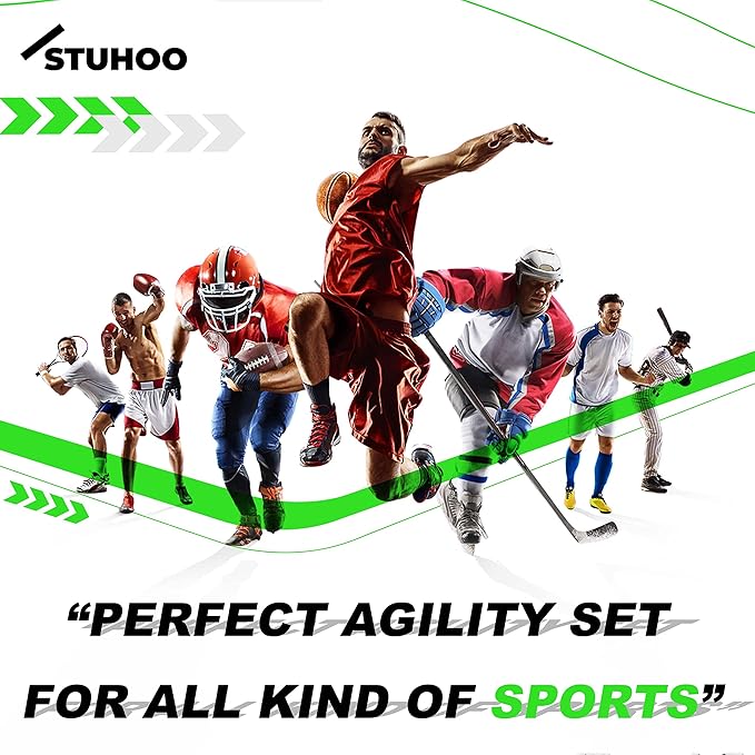 - 【Versatile Utility with 100% Satisfaction】: Use our football training equipment set to improve speed, explosiveness, agility, footwork to be efficient in trainings; kids agility equipment can be used to make fun training obstacles for children; STUHOO provides 100% satisfaction & active support to its customer; in case of any query reach out to the customer support
