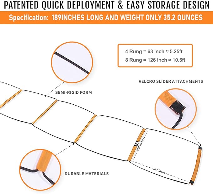 - ✔PATENTED DESIGN:Our patented design has multiple functions. It combined the function of the ladder and hurdles. Agility ladder set can expand your training mode in multiple dimensions by configuring the agility ladder to different shapes. If we fix it to football hurdles shapes, it can help enhancing user's dynamic flexibility, coordination and balance. Sports ladder kit gives you more possibilities for training and performance.