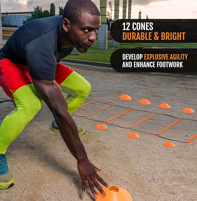 - ✔DESIGNED BY COACHES:Designed by athletes and coaches, AlphaWorx agility ladder set is designed to meet the expectations of indoor and outdoor sports lovers. With the help of sliding rings and retractable velcro, you can freely adjust the ladder into various shapes to practice more actions. The design of adjustable combination mode reduces the number of products purchased by customers, which is cost saving for customers. Spend the least money, buy the best goods.