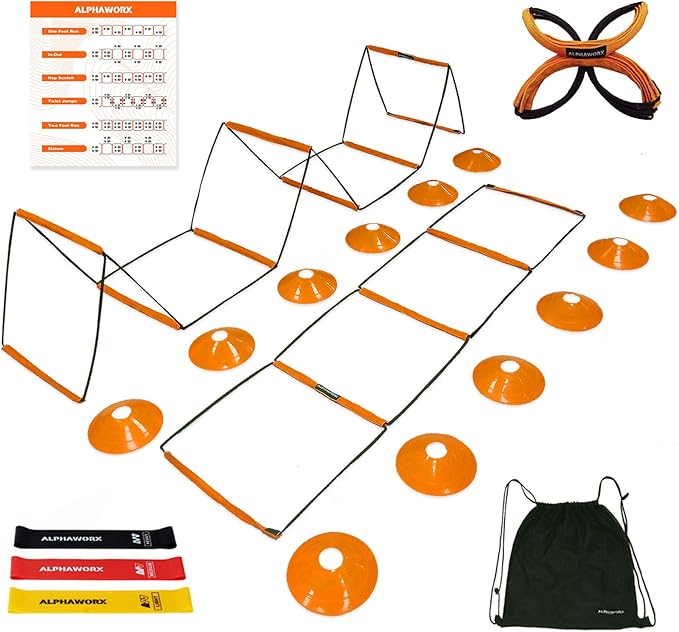 - ✔ SUITABLE FOR ALL GROUPS:It’s a good choice for all groups of people who love indoor and outdoor sports training. Users can bring Alphaworx agility ladder set into any training course freely. This is the perfect agility ladder set for adults and children who want to be healthy and competitive in sports.