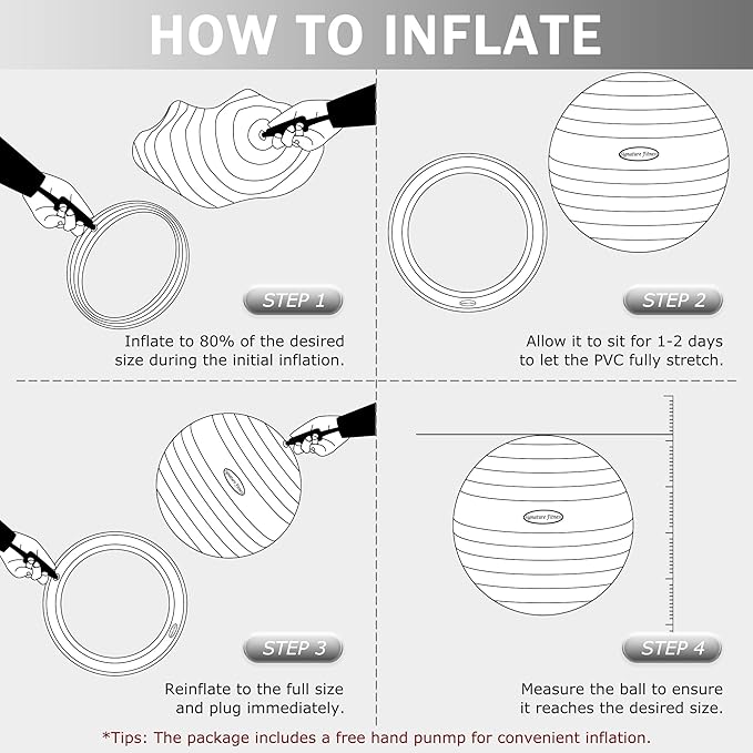 - Package Includes: 65cm inflatable exercise ball and inflatable ring base