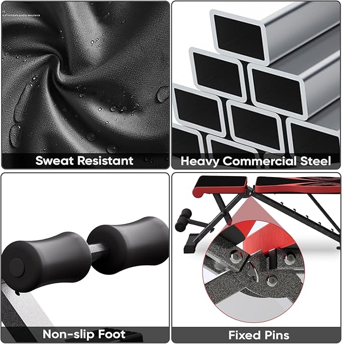 - [COMFORT & DURABILITY MATERIAL] The 1.57-inch extra thick backrests and seats are crafted from premium water-resistant PU leather and soft foam padding, ensuring comfort during extended workouts. Additionally, the steel surface is upgraded to resist scratches and rust, ensuring greater durability compared to normal coatings.