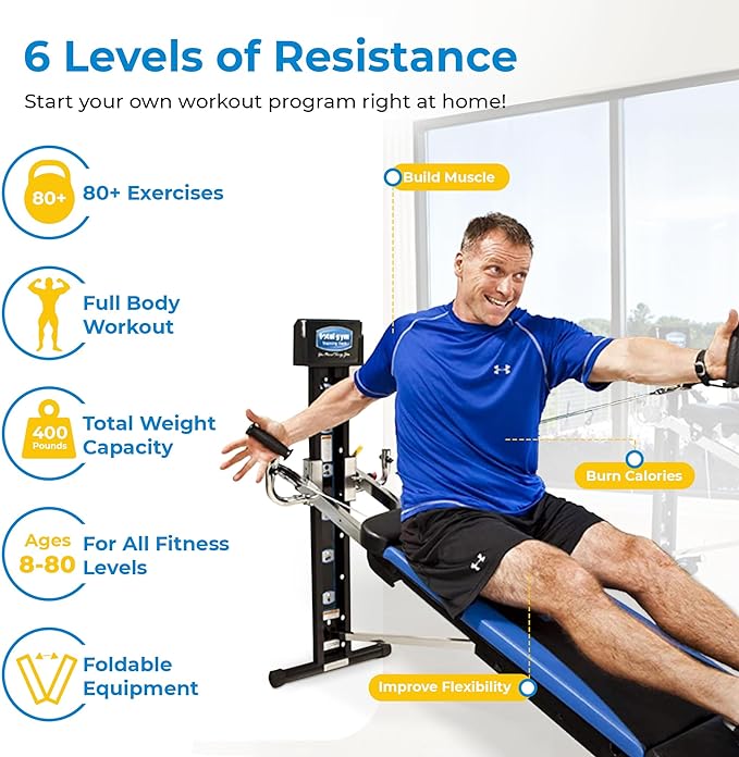 Total Gym XLS Men/Women Universal Total Body Training Home Gym Workout Machine with Squat Stand, Leg Pull, 2 Ankle Cuffs, and Exercise Chart