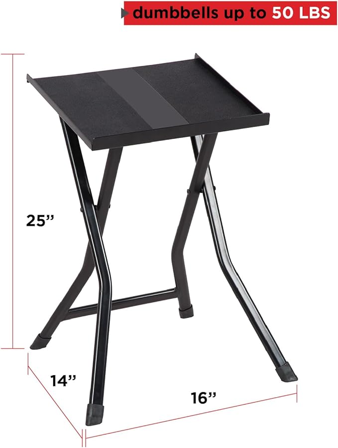 - SIZE & DIMENSIONS: Dimensions of this large workout accessory has a width of 16-inches, depth of 14-inches, and height of 25-inches. The perfect option to place kettlebells, dumbbells, and other strength equipment between reps.