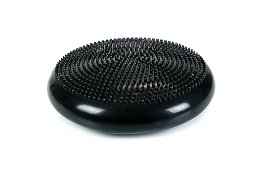 - Inflatable vestibular disc mimics both the movement and shape of the inflatable exercise ball when used on any seat