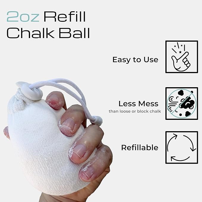 - Easy to Use - Our chalk for weightlifting, climbing, and gymnastics is less messy than loose or block chalk and will last much longer; Keep it in your chalk bag for rock climbing or gymnastics and simply squeeze the chalk ball to coat your hands